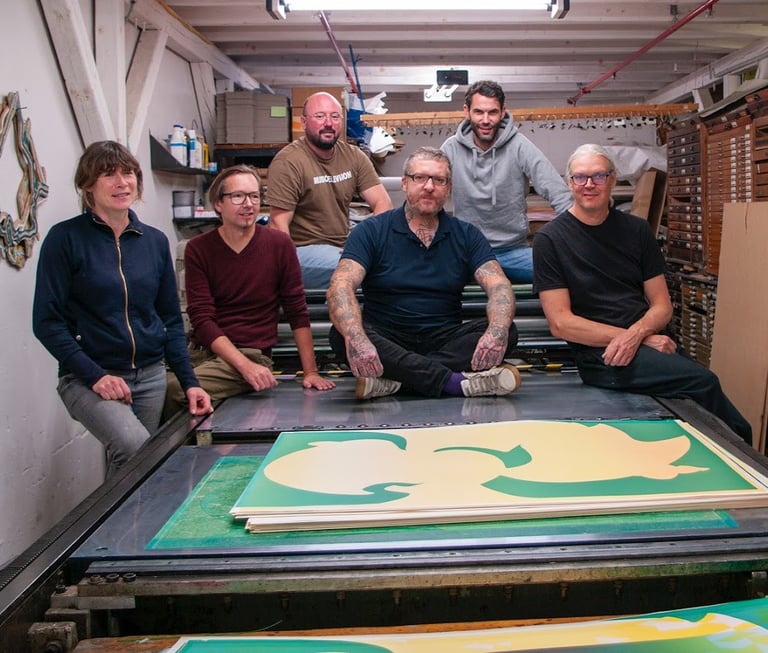Depuis plus de trois décennies, le duo Gfeller + Hellsgård explore les frontières de la sérigraphie comme on arpente un territoire en perpétuelle mutation. Leur pratique, née au milieu des années 1990, s’est d’abord nourrie de la culture indépendante et des contre-courants graphiques, avant de s’imposer comme un terrain d’expérimentation.