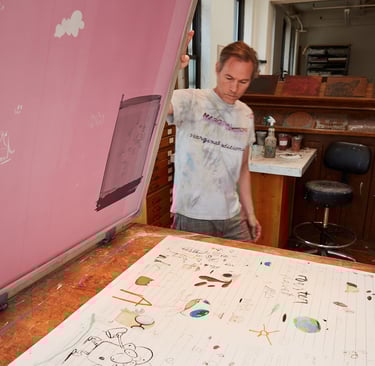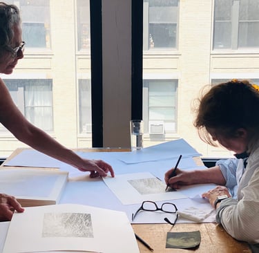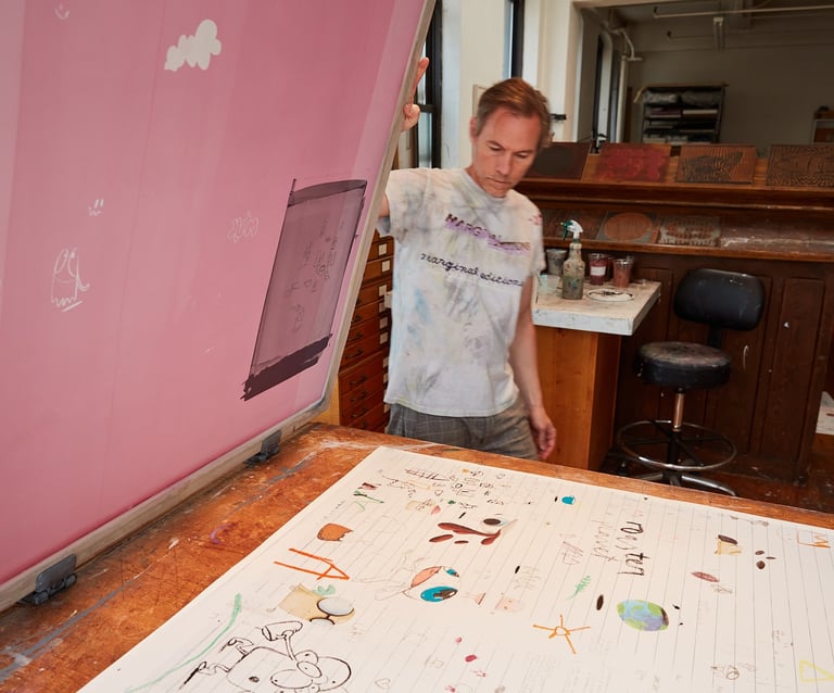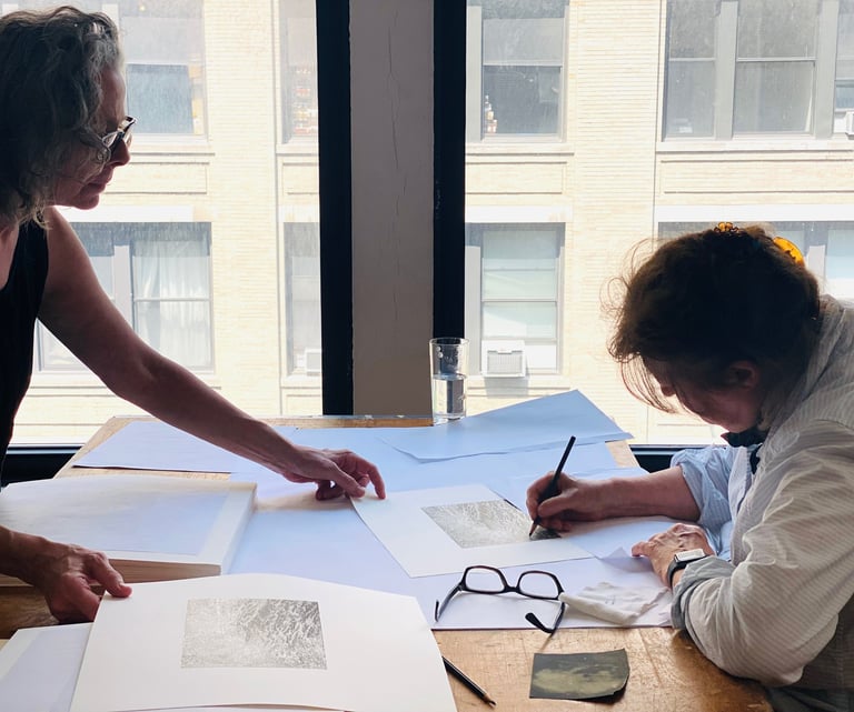 En collaboration avec le maître imprimeur Andrew Mockler dans son atelier situé à Brooklyn NY, chaque artiste est encouragé à développer une démarche expérimentale. Travailler ensemble en lithographie, gravure, monotype et impression en relief, l'imprimeur et l'artiste font sortir le travail de l'artiste du studio dans le domaine de la gravure.