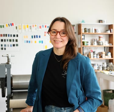 Nous y travaillons sur pierre avec une presse Marinoni Voirin. Après plusieurs années d’apprentissage et de pratique, l’atelier a été créé en 2021. C’est un lieu d’échange où la technique se plie au vocabulaire graphique de chaque artiste pour donner forme à des œuvres singulières.