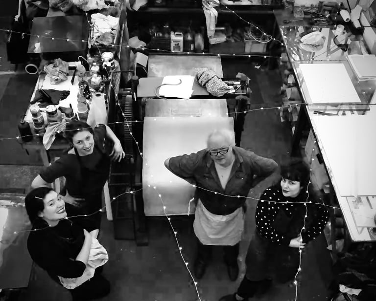 Nos ateliers sont dédiés aux travaux à grande échelle gravure, sérigraphie, impression en relief, lithographie, photogravure, cyanotype, réalisation de livres et travail des métaux. Nous opérons comme un espace multidisciplinaire où la gravure d'art traditionnelle les techniques fusionnent avec les pratiques expérimentales, encourageant le dialogue et la contamination croisée entre différents langages artistiques. Nous avons commencé en tant qu'artistes, graveurs et créatifs réunis par une passion pour le papier, l'art, le design et l'impression. Cependant, dans le contexte d'un monde où les images remplacent l'expérience et médiatisent nos réalité sociale, nous en sommes progressivement arrivés à la conclusion que notre préoccupation centrale consiste à comprendre comment les expériences visuelles construisent, reflètent et faire circuler du sens, de l’identité, etc.