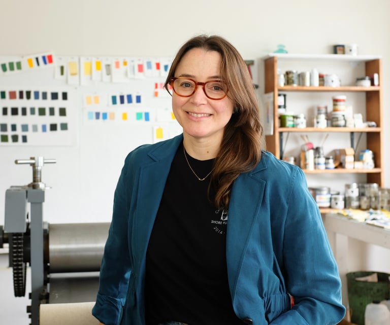 L'imprimeuse Mae Shore a travaillé pour Dick Solomon chez Pace Prints (en commençant sous Ruth Lingen et Bill Hall) pendant plus d'une décennie avant d'ouvrir son propre atelier pour collaborer avec des artistes émergents et établis afin de créer des estampes originales imprimées à la main en éditions très limitées avec la participation directe de l'artiste. Chaque tirage est signé et numéroté par l'artiste au crayon.