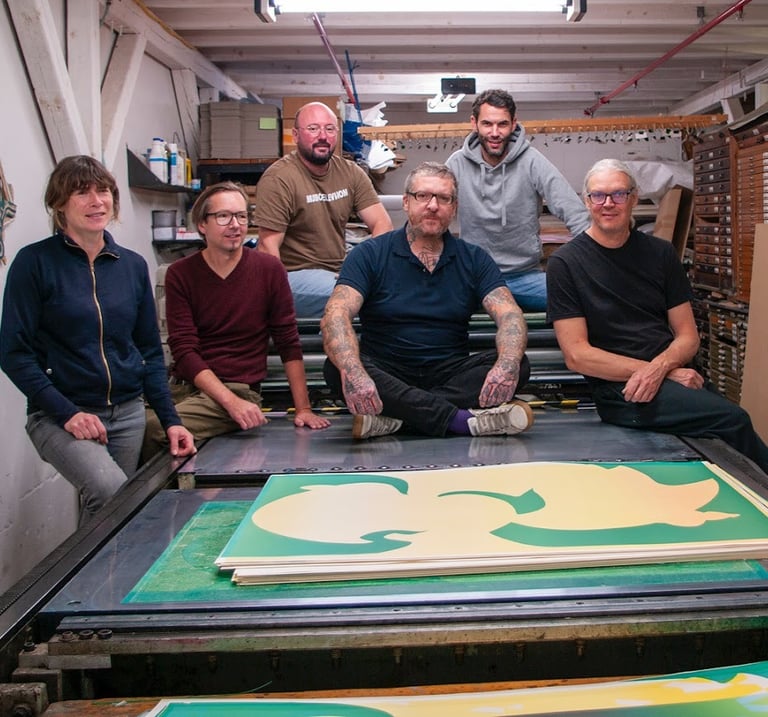Depuis plus de trois décennies, le duo Gfeller + Hellsgård explore les frontières de la sérigraphie comme on arpente un territoire en perpétuelle mutation. Leur pratique, née au milieu des années 1990, s’est d’abord nourrie de la culture indépendante et des contre-courants graphiques, avant de s’imposer comme un terrain d’expérimentation.